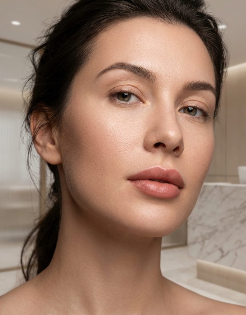 - Lippen: Konturkorrekturen und sanfte Schattierungen gleichen leichte Volumendifferenzen optisch aus.